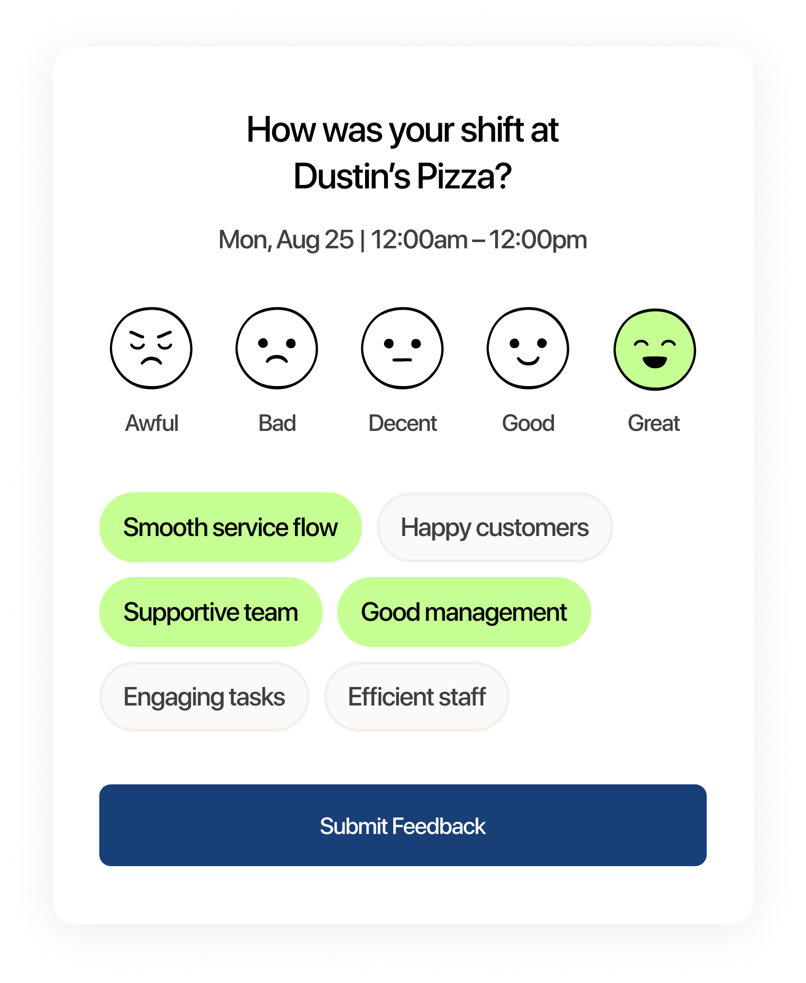 – Send shift surveys and gather feedback on areas for improvement